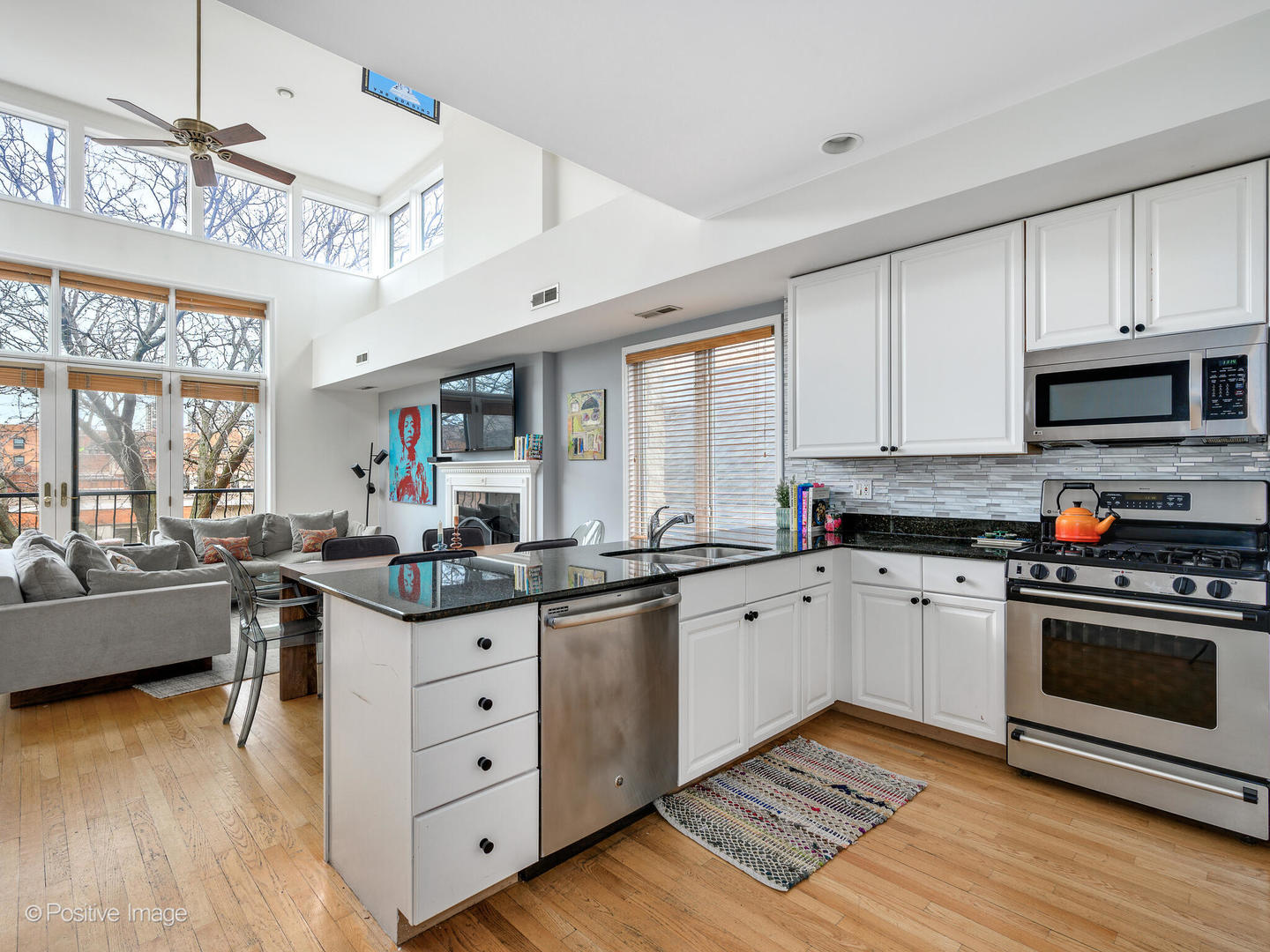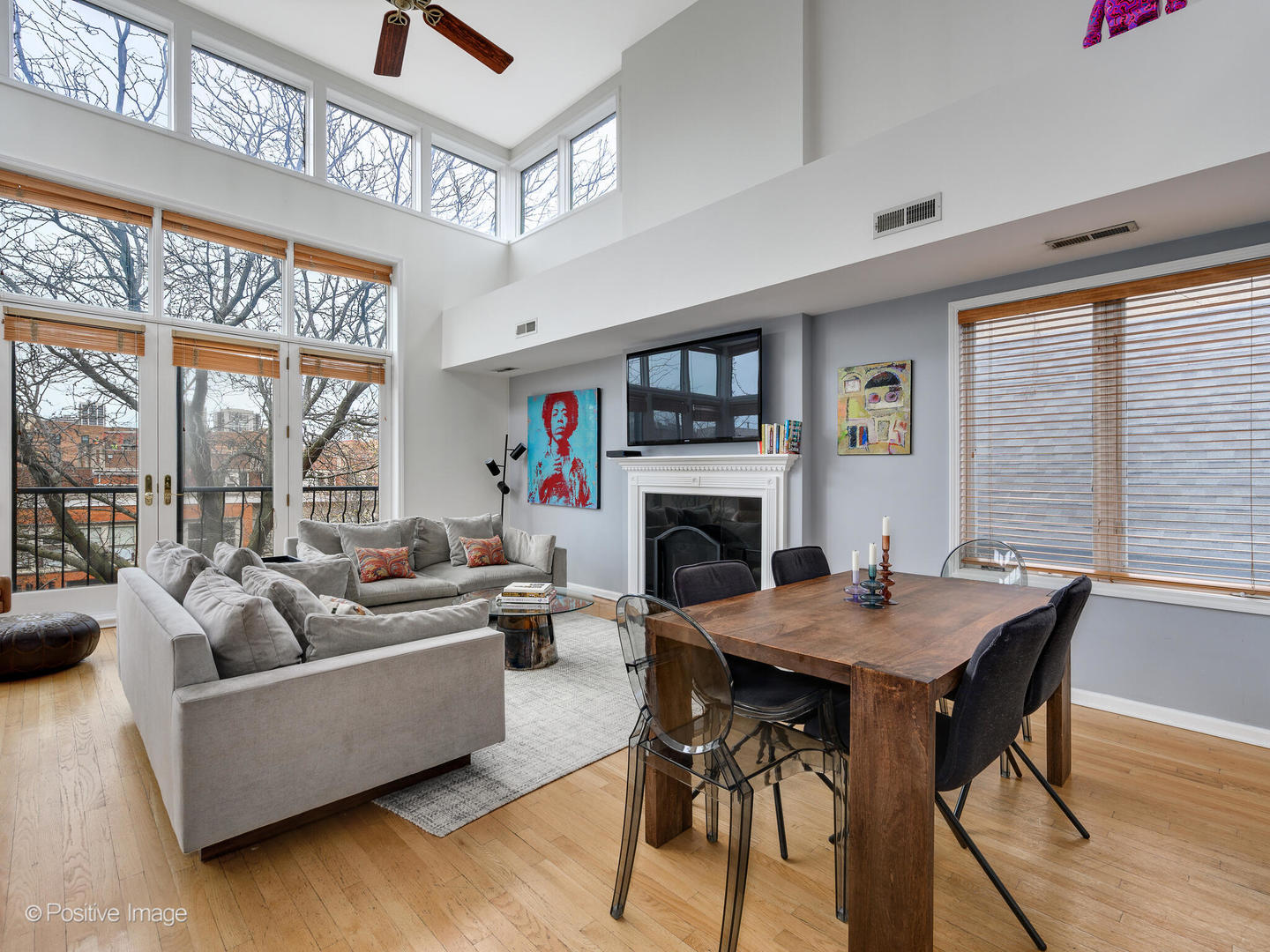 Experience urban luxury in this exceptional Old Town Duplex Up Penthouse, boasting 2 bedrooms, a spacious loft that can be converted into a 3rd bedroom, 2 baths, 2 private outdoor sanctuaries, and 1 garage parking spot. Spanning 2005 SF, including 310 SF of outdoor bliss, this residence epitomizes contemporary city living. Step into towering double-height windows, infusing every corner with natural radiance. The expansive loft area, ideal for both a secondary living space and home office, offers versatility and can effortlessly transform into a third bedroom, as per your needs. The kitchen is adorned with sleek white cabinetry, striking black granite countertops, and a full-height tile backsplash. Stainless steel appliances complement the space, while a generous breakfast bar accommodates seating for 4, perfect for casual dining and entertaining. A fireplace is the focal point of the main living room, adding warmth and charm to the ambiance. Hardwood floors flow seamlessly throughout, with carpeting in the primary bedroom only for added comfort - the rest of the home has hardwood. The primary suite, second bedroom, and guest bath are conveniently located on the first floor, along with one of the tranquil private outdoor spaces, ideal for al fresco relaxation. Ascend to the second floor to discover an expansive loft area and a large utility room, offering ample storage solutions. Step outside onto 150 SF deck, where you can unwind and revel in the urban scenery including gorgeous skyline views. Additionally, this unit boasts roof rights, presenting an exciting opportunity for the creation of a remarkable rooftop deck. Situated in the vibrant heart of Old Town, this residence grants unparalleled access to top-rated restaurants, chic boutiques, and cultural attractions, ensuring a lifestyle of convenience and sophistication. Don't miss the chance to make this extraordinary urban retreat your own!
