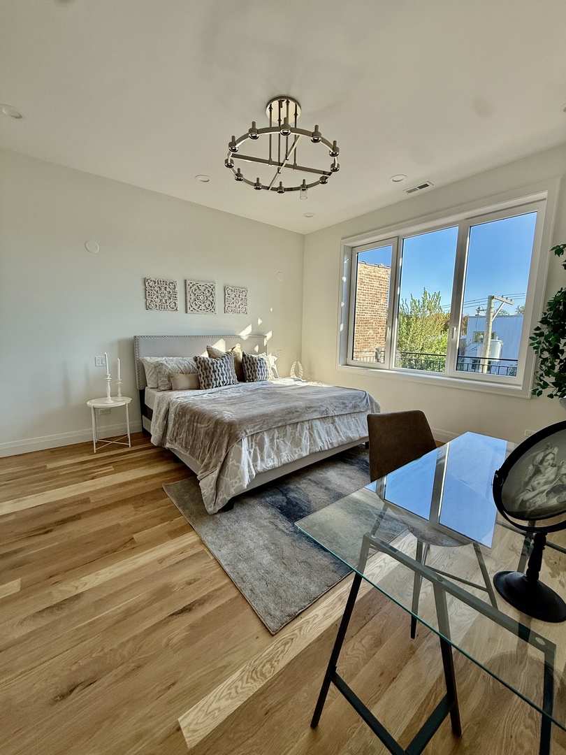 JUST COMPLETED! FOR LIMITED TIME, DEVELOPER/PREFERRED LENDER ARE OFFERING A 1% BUY DOWN ON THE CURRENT RATE! Unrivaled among area top-floor homes-wider, brighter, and offering the best price per square foot in the area. Introducing a premier new-construction residence with an ENORMOUS PRIVATE ROOFTOP DECK WITH INCREDIBLE CITY VIEWS! Built with RM4.5 zoning, this home offers significantly more space than typical 3-flats. High-end finishes throughout, including a chef's kitchen with European cabinetry, quartz countertops, stainless steel appliances and Restoration Hardware lighting. Luxurious spa-like baths feature porcelain tile floors and ample storage. Expansive front windows and premium European tilt-and-turn windows provide exceptional insulation, soundproofing, and natural light. Flexible 2BR + built-out office + wet bar, with additional top-floor storage-ideal for work-from-home and entertaining. A+ location: close to Spinning J, California Clipper, and Lucy's; 3 blocks to the Western bus line; approx. 1.5 miles to the Western Blue Line station; near Smith Park and within easy reach of Bucktown, and Wicker Park to this- Bucktown, Wicker Park and Ukrainian Village. Walk & Bike Score: 90. Only 2 left...
