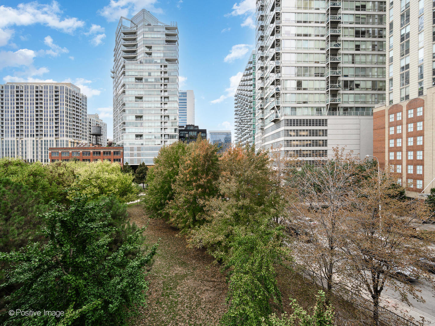 Unobstructed park views and sophisticated style define this stunning end-unit duplex-up in the heart of River North! This contemporary 3-bedroom + den, 2.5-bath residence lives like a single-family home and showcases designer finishes throughout. Thoughtfully reimagined from top to bottom in a full recent renovation, the home boasts over $175K in custom upgrades. The main level's dramatic living space features soaring 20-foot floor-to-ceiling windows that frame incredible, completely unobstructed views of Ward Park, the river, and lush treetops. The open 2,000-square-foot layout is ideal for entertaining, highlighted by a chef's kitchen with Sub-Zero refrigerator, Wolf cooktop and oven, a floating vented hood, full-height quartz backsplash, and a 6-foot waterfall island. A custom bar area with wine fridge and abundant storage adds the perfect touch for gatherings. Upstairs, two spacious bedroom suites include a primary retreat with an attached den/exercise area, two large custom closets, and a spa-quality bath with a walk-in rain shower and floating dual vanities. Every detail exudes luxury, from the Italian cabinetry and new wide plank white oak hardwood floors through out to the Porcelanosa tile, custom lighting, and motorized shades. Enjoy two private balconies (one on each level) and take in sweeping park and river views from every room, truly a rare end-unit perspective unlike any other. Garage parking on the same floor is available for an additional $35,000. This full-amenity building offers a 24-hour door staff, pool, fitness center, and on-site management. Perfectly located near East Bank Club, top restaurants, nightlife, the dog park, and the riverwalk, this is River North living at its absolute best.